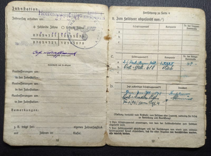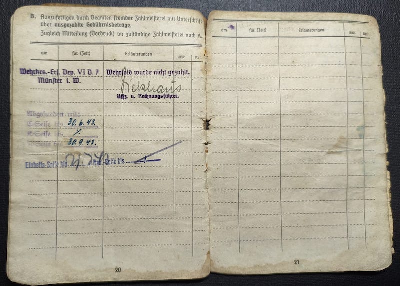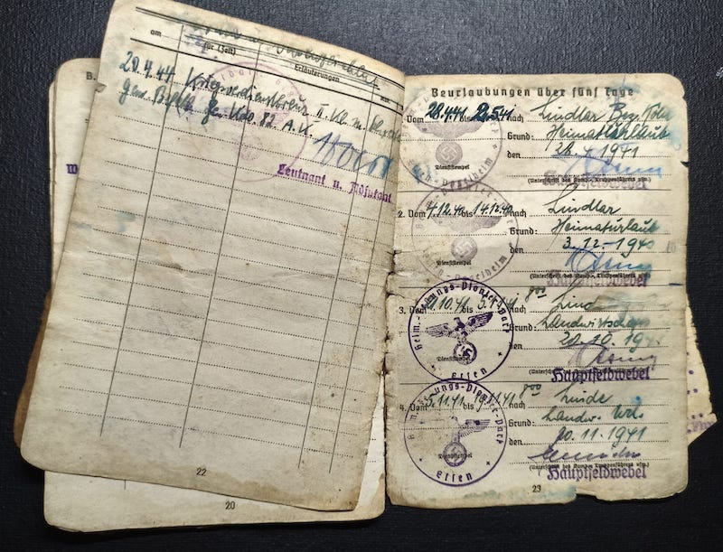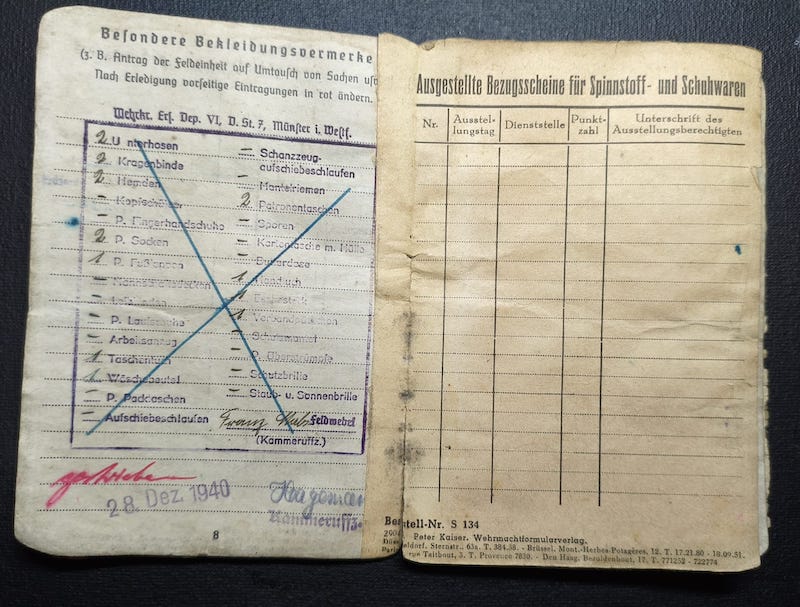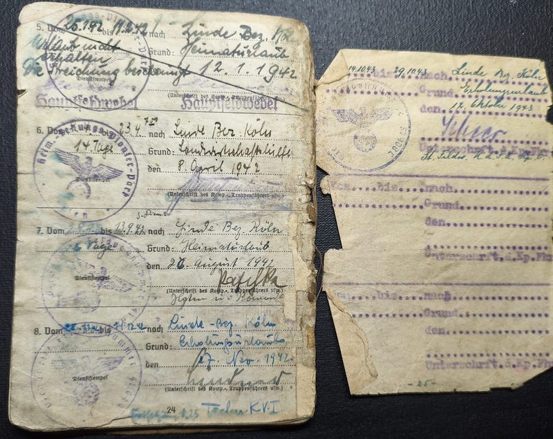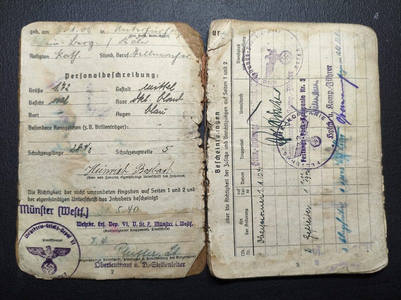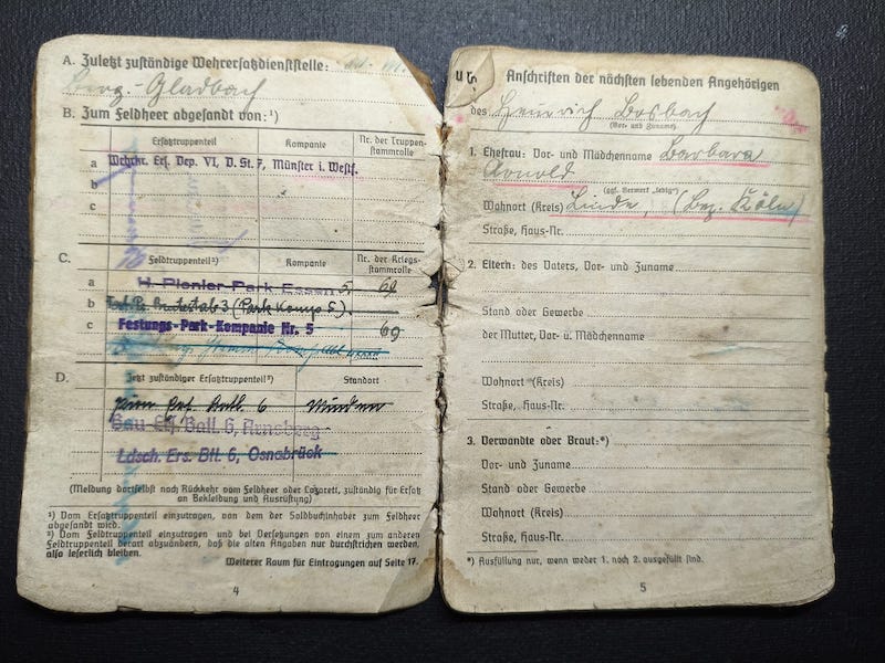 Here we have a rather beat up but original Soldbuch to a really hard to find Westfront unit…