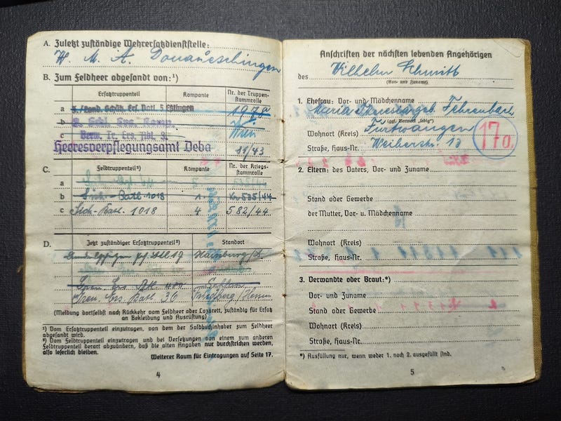 Schmitt was born in 1903 and his Soldbuch was issued in September 1941.