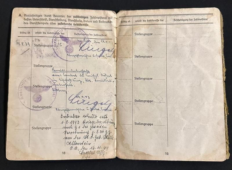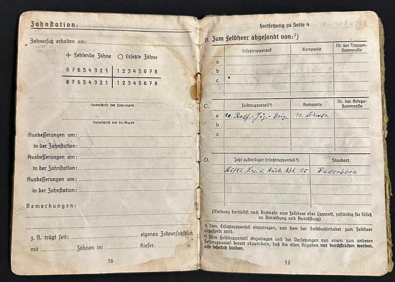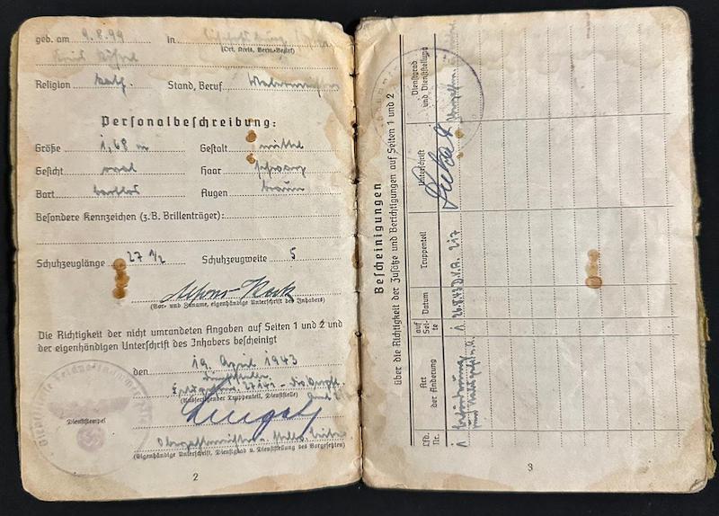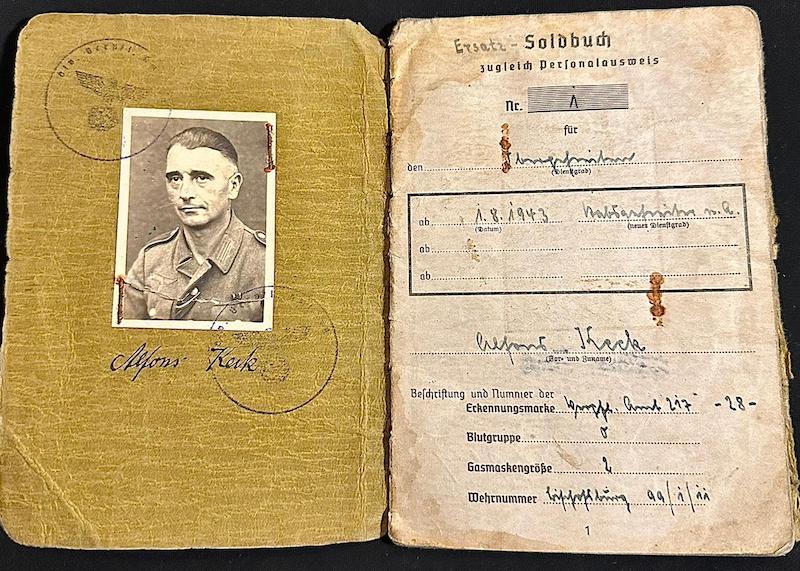 Opened in April of 1943, this Soldbuch was issued to Alfons Keck born in 1899.