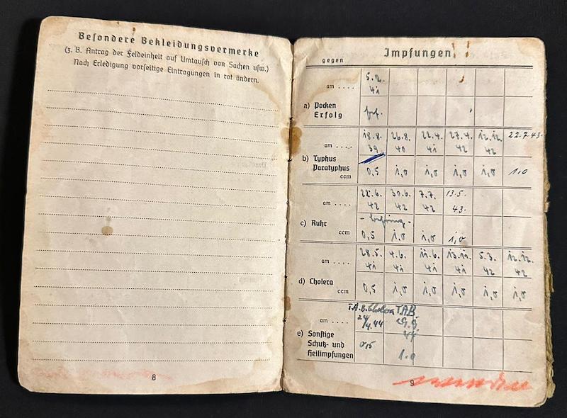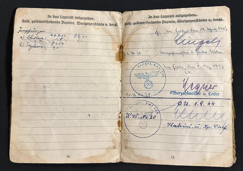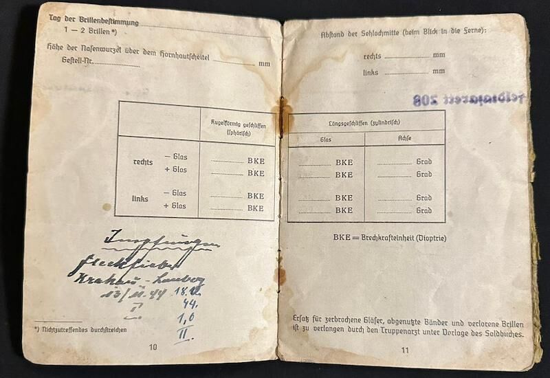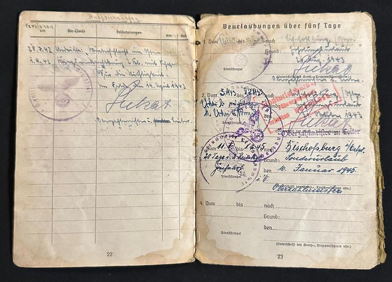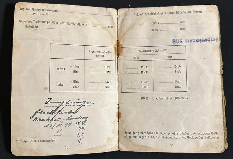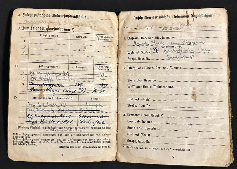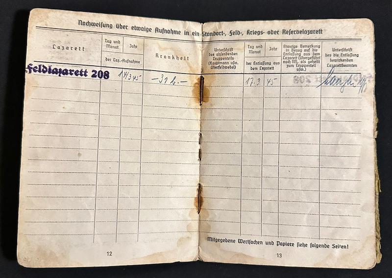 WWII Wehrmacht Soldbuch – Stabsgefr Keck – 10. Radfahrer-Jäger-Brigade – Prussia 1945 – Wounded – Heiligenbeil Pocket 1945 – Sold
